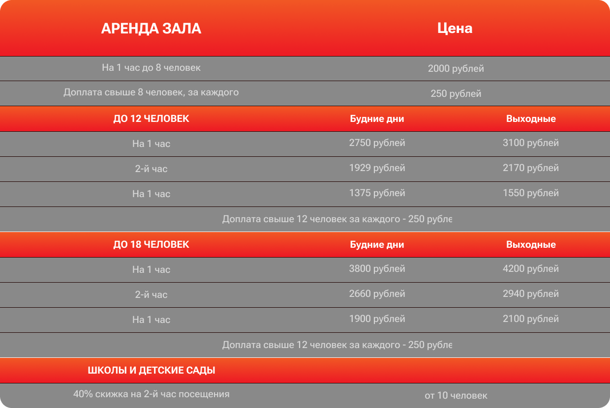 - Спортивную одежду и носочки. Одежда должна быть без ремней, пуговиц и металлических элементов. И конечно, не забывайте документы, удостоверяющие личность, на каждого из вашей компании)